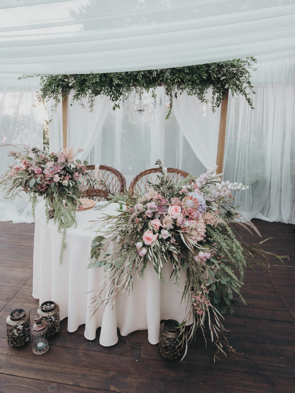 - Reception: Head table florals, backdrop concepts, centerpieces